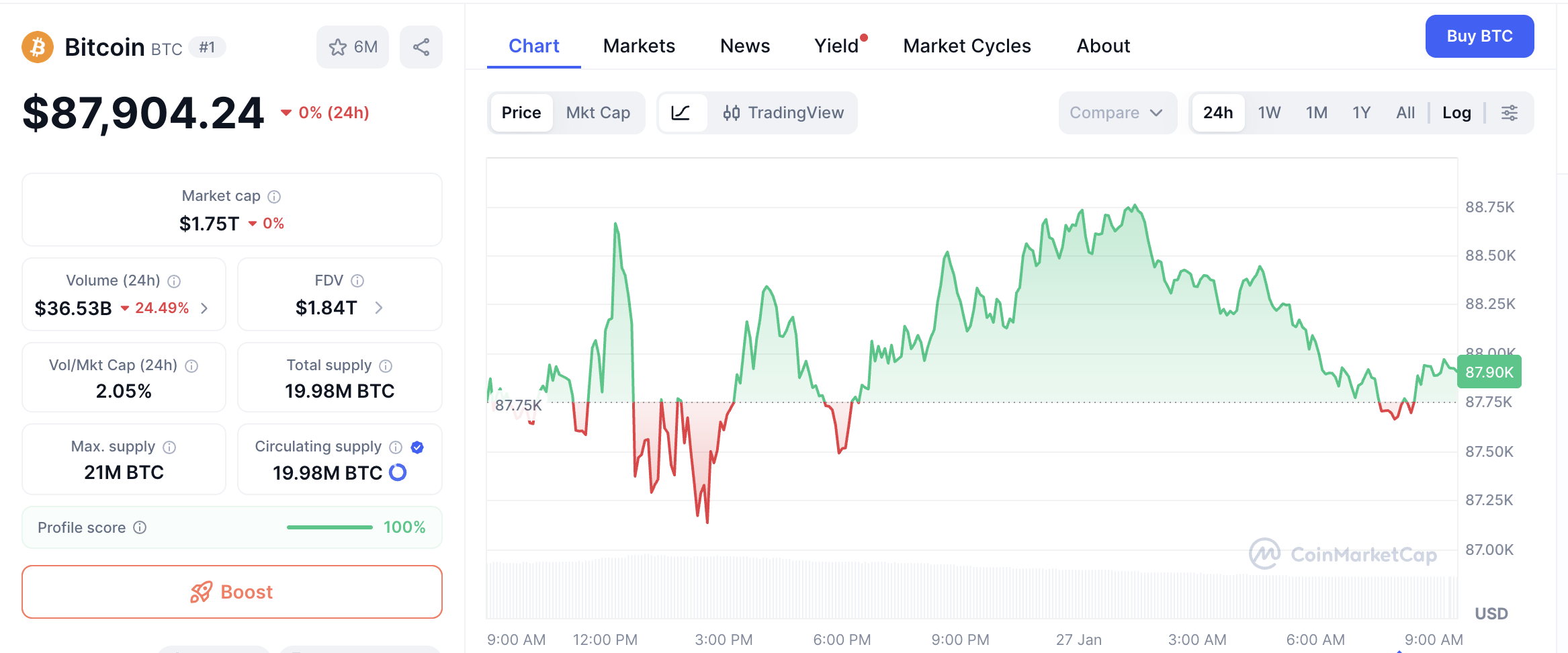 Bitcoin (BTC) siguió ese tono: tras un fin de semana volátil en el que tocó mínimos por sobre US$ 86.000, rebotó hacia US$ 87.000–US$ 88.000 durante la mañana del lunes en Asia y Europa, todavía en zona frágil. Al momento de publicar, BTC ronda los US$ 87.900, en línea con esa banda de negociación.