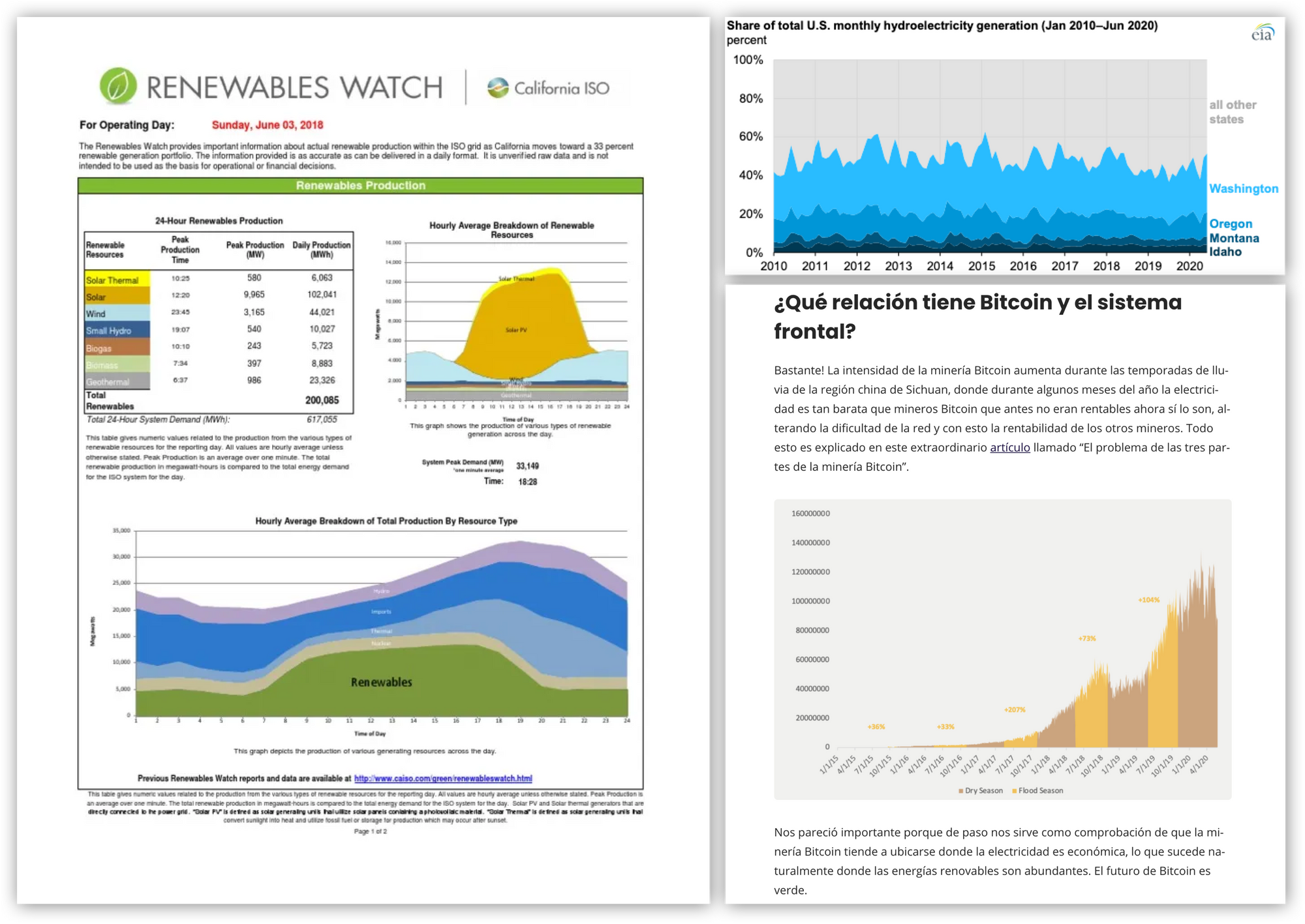 Este estudio de Cambridge estimó que el 75% de los mineros Bitcoin usan alguna forma de energía renovable, y múltiples autores estimaron que del total de electricidad usada, entre 30 y 40% es exclusivamente producida por fuentes renovables.