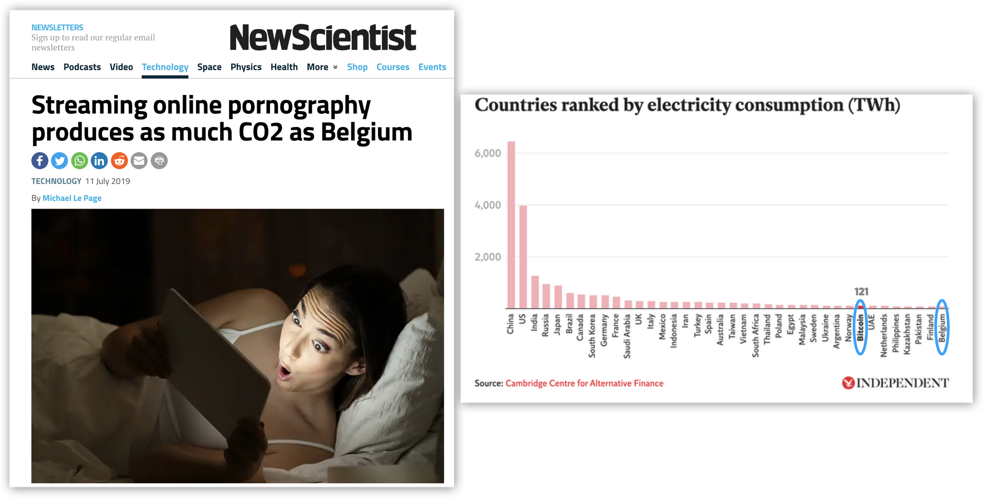 ¿Sabías que la industria porno es responsable de emisiones de CO2 similares a la de países como Bélgica? Dado que el consumo eléctrico de Bélgica es similar al de Bitcoin, tal vez valga la pena ver menos pornografía y así nos quedamos con lo mejor de los dos mundos, con más sexo real y un sistema monetario confiable.