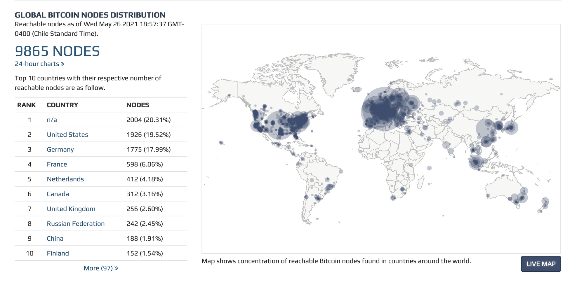 Respecto a quienes acusan a Bitcoin de estar concentrado en pocos pools, es importante que entiendan que lo fundamental en Bitcoin son los nodos, donde cada pool es sólo uno y hay miles de otros nodos. Cada persona puede tener uno (en Buda.com tenemos varios), porque sólo requiere descargar un software gratuito y descargar los Terabytes de información que lleva acumulada la cadena de bloques. En la red Bitcoin todos pueden validar transacciones y nadie tiene que confiar en la verdad de otro, porque todos pueden comprobar por su cuenta cuál es la cadena con mayor poder computacional.