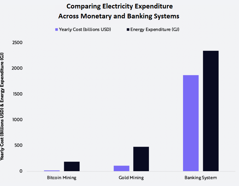 En cambio los otros sistemas monetarios, como el bancario y la industria del oro, no sólo consumen muchísima más electricidad que Bitcoin, además consumen los otros tipos de energía.